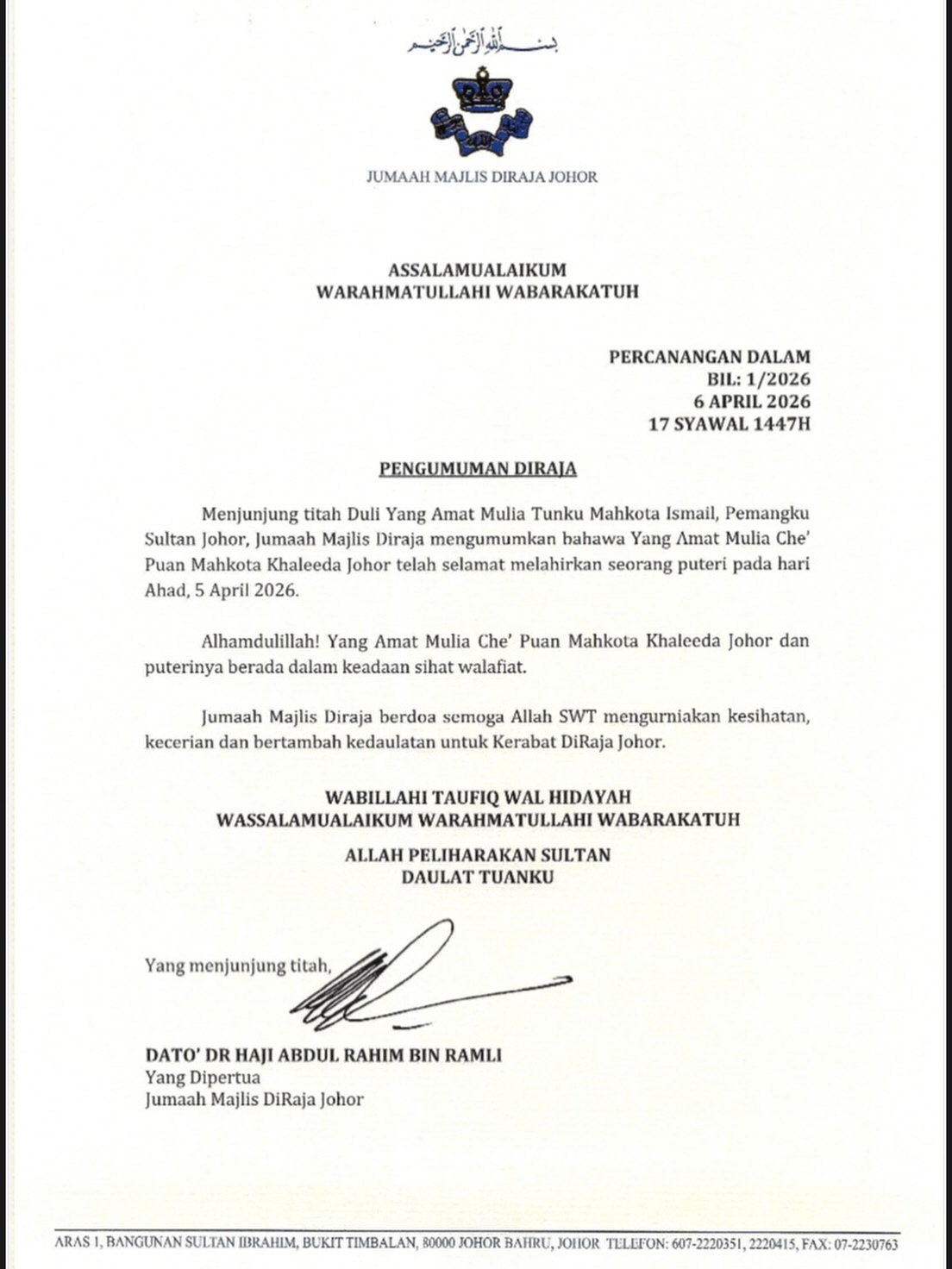 KDYMM SPB Yang di-Pertuan Agong Sultan Ibrahim berkenan menerima mengadap CP Datuk Ibrahim Darus, Pengarah Cawangan Khas Polis Diraja Malaysia (PDRM).